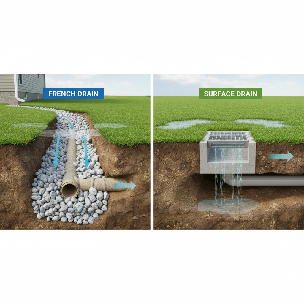 How Do French Drains Manage Water Differently Than Surface Solutions?